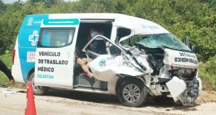 Kinchil, Yuc., 10 de septiembre.- Por poco y no lo cuentan los pasajeros de una ambulancia de traslado al colisionar por detrás de un pesado volquete cargado de toneladas de excremento de aves poco antes de este mediodía en la carretera Kinchil–Celestún. Argenis Sosa Palomar, de 36 años conducía la …