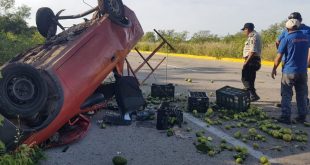 Impacta una Van a una “pickup” cargada de frutas TICUL.— Un total de 14 lesionados, entre ellos dos de consideración, fue el saldo de un aparatoso accidente de una camioneta tipo Van de trasporte público y una camioneta Chevy tipo “pickup” utilizada para el transporte de frutas. Los hechos se …