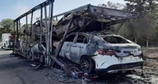 MÉRIDA, Yuc., 31 agosto (Yucatán al Instante) . Un tráiler doble remolque “madrina” que transportaba vehículos de lujo de la Mercedes-Benz terminó cubierto en llamas. Los hechos se suscitaron en la carretera Mérida-Campeche justo en la caseta de Halachó. Lo que dejó como saldo 6 de 10 vehículos siniestrados. Unidades …