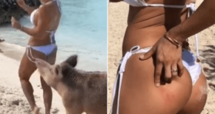 La supermodelo venezonala, Michelle Lewin, estuvo en aprietos luego de que un cerdo le mordió un glúteo durante sus vacaciones en Las Bahamas. En redes sociales cirucla un video donde puede verse que en un pequeño descuido de la venezolana, el animal aprovecha para soltar una mordida que dejó algunas marcas en su …