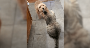 Dos perros y un gato protagonizan un cómico pleito no muy distinto al de una escena cotidiana entre hermanos. El gato molestaba al perro más pequeño, quien, fastidiado, llamó a un can más grande para que lo defendiera. El pasado 26 de octubre, Louie, un cachorro de cuatro meses, estaba …