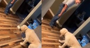 Típico, tu perrito acaba de hacer alguna travesura y en cuanto te ve, ya sabes que algo malo hizo por la forma en la que se comporta, pues este lomito que te presentamos, camina lento cuando sabe que una llamada de atención se avecina. Esta mascota en Paragould, Arkansas, tiene un truco de lo más efectivo …