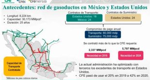 CIUDAD DE MÉXICO.- De acuerdo con la Comisión Federal de Electricidad (CFE), mediante una serie de contratos durante los gobiernos de Felipe Calderón y Enrique Peña Nieto se provocó una dependencia de México al gas natural de Texas, en Estados Unidos (EU). El director de la CFE Energía, Miguel Reyes, …