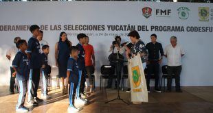 Mérida, Yucatán a 25 de mayo de 2024.-Tres selecciones de Yucatán de fútbol correspondientes al programa de la Coordinación de Selecciones Estatales (Codesfut) fueron abanderadas esta tarde por la Abogada María Fritz Sierra, encargada del despacho del Gobernador, previo a su participación en el Campeonato Nacional de la Federación Mexicana …