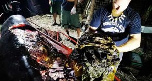 Una ballena que fue encontrada muerta varada en una playa en el sureste de Filipinas tenía 40 kilos de plástico en el estómago, informó hoy la prensa local. El cetáceo, de la especie zifio o ballenato de Cuvier, apareció el viernes en la orilla del mar del municipio de Mabini, en la provincia de Valle Compostela, y se le sometió a …