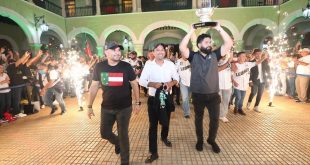-Jugadores y directivos de la novena melenuda acudieron con la Copa Zaachila a Palacio de Gobierno para saludar a Vila Dosal y celebrar junto con miles de yucatecos la obtención del banderín del circuito veraniego de la pelota mexicana. Mérida, Yucatán, 21 de septiembre de 2022.- Con una gran fiesta …