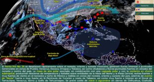 MÉRIDA, Yuc., 28 de enero 2022.- En las próximas 24 horas, se prevé cielo medio nublado a nublado, con probabilidad de lluvia con intervalo de chubascos fuertes. Temperaturas cálidas a calurosas durante el día y de templadas a cálidas por la noche. Se prevé que una vaguada pre-frontal genere nublados …
