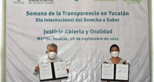 Mérida, Yucatán a 28 de septiembre de 2021.- En el marco del Día Internacional del Derecho a Saber y la Semana de la Transparencia en Yucatán, el Poder Judicial del Estado de Yucatán firmó un Convenio Específico de Colaboración con el Instituto Estatal de Transparencia, Acceso a la Información Pública y …