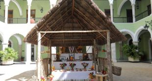 La experiencia de observar este ejemplo de permanencia de nuestras tradiciones y costumbres, se complementa con la proyección de un video mapping sobre la fachada interior del edificio. Mérida, Yucatán, 31 de octubre de 2022.- Las imágenes de Ligia Cámara Blum, Armando Manzanero y Sergio Esquivel, resaltan en el altar …