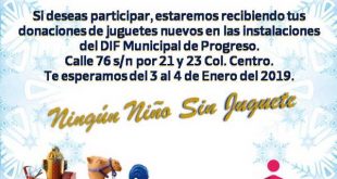 Progreso, Yucatán a 3 de enero del 2019.- Regalar sonrisas para los niños en este día de reyes es una de las metas para el DIF Municipal, por lo que exhortan a la ciudadanía a donar un juguete para ser entregado a pequeños de las zonas más vulnerables de las …