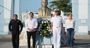 Progreso, Yucatán a 3 de enero de 2019.- Autoridades Municipales, presididas por el Alcalde Julián Zacarías Curi, participaron en un homenaje esta mañana con motivo del aniversario luctuoso del “Apóstol de la raza”, Felipe Carrillo Puerto. Reunidos en el busto del ex gobernador de Yucatán, que se encuentra a las …