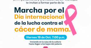 Conmemorará el Día Internacional de la Lucha Contra el Cáncer de Mama PROGRESO.- Este viernes 19 de octubre autoridades municipales y del sector salud encabezarán una caminata alusiva al Día Internacional de la Lucha Contra el Cáncer de Mama, misma que partirá de la Casa de la Cultura hasta llegar …