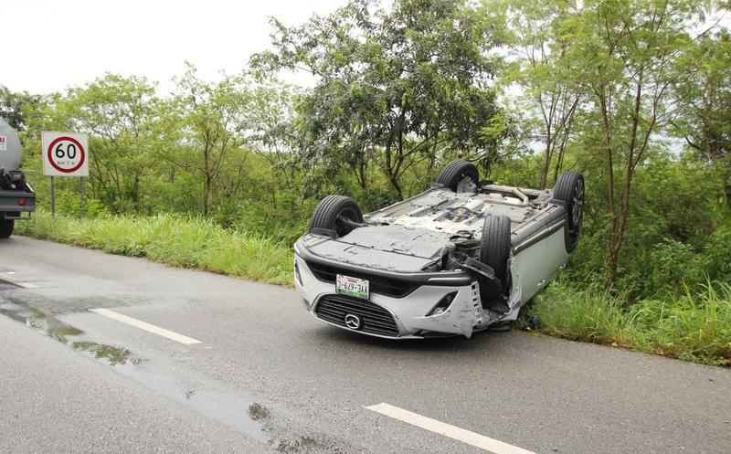 Vuelca en la Mérida-Motul, menor y mujer resultan lesionados