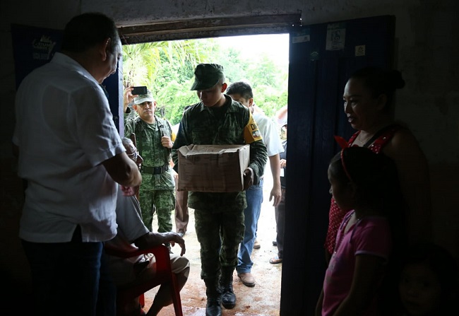 Tizimín, Yucatán, 17 de junio de 2018.- Tras las intensas lluvias registradas en la región oriente de la entidad, el titular del Instituto de Vivienda (IVEY), César Escobedo May, junto con el alcalde de Tizimín, Jorge Vales Traconis, y elementos de la Secretaría de la Defensa Nacional (Sedena), recorrieron la …
