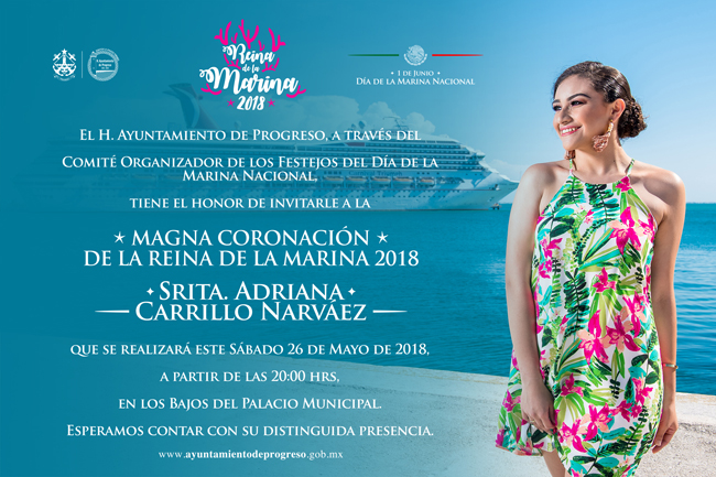 PROGRESO.-El sábado 26 de mayo el gremio pesquero de Progreso tendrá oficialmente a su soberana, la joven Adriana Carrillo Narváez, para tal fin el H. Ayuntamiento de Progreso y el Comité Organizador de los Festejos del Día de la Marina, tiene el gusto de invitar a toda la comunidad a …