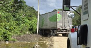 Federico Azul/Yucatán al Instante Kinchil, Yuc. a 23 de octubre 2024.- Un tractocamión de caja seca paso serios apuros al atascarse fuera del camino que conduce a la granja “Amaris 2” cerca del kilómetro 61, de la vía Mérida-Celestún, la mañana de anteayer. Se presume que el chofer de la …