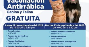 Progreso, Yucatán, 19 de septiembre de 2025.-El próximo lunes 22 y martes 23 de septiembre, personal de la Unidad de Control y Protección Animal del Ayuntamiento de Progreso llevará a cabo la Jornada de Vacunación Antirrábica Canina y Felina, por lo que se invita a los dueños de mascotas a …