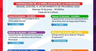 Progreso, Yucatán, a 9 de junio de 2025.-La Dirección Municipal para el Desarrollo e Inclusión a la Diversidad, en coordinación con el Ayuntamiento de Progreso, invita a la ciudadanía a participar en las actividades programadas en el marco del Mes del Orgullo, a través del programa “Progreso Inclusivo y Diverso”. …
