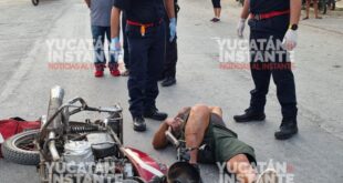 Federico Azul/ Yucatán al Instante Kinchil, Yuc., 29 de enero 2022.- Tremendo porrazo se llevó un motociclista, quien tras conducir bajos los efectos del alcohol acabó chocando por alcance contra un mototaxi estacionado, este viernes en la calle 19 con 18-A del centro de Kinchil, frente a conocida tienda de …