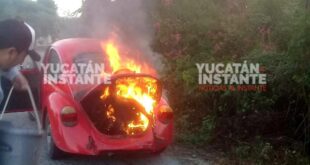 Corresponsalías/ Yucatán al Instante Kinchil, Yuc., 18 de diciembre 2021.- Por poco acaba chicharrón su vocho de un vecino de Tedzidz, esta mañana cuando ingresaba a la comisaría de Tamchén, pues una falla en el motor causó una explosión, que al final logró apagar el fuego a cubetazos. Ricardo Méndez …