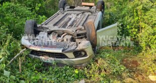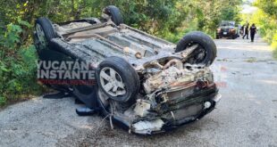Federico Azul/Yucatán al Instante Kinchil, Yuc., 28 de septiembre 2021.- Una fantasmal volcadura protagonizó el guiador de un vehículo Aveo está tarde, en la vía estatal que enlaza esta cabecera municipal con su comisaría de Tamchén. Al llegar los agentes al mando del director de la Policía Municipal, Gonzalo Humbertho …