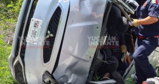 Corresponsalías/Yucatán al Instante Kinchil, Yuc., a 13 de julio 2021.- Una familia que venía de pasear de Celestún en un vehículo acabaron zangoloteados después de que el guiador ‘mordiera’ el borde de la cinta asfáltica, justo a la altura del kilómetro 50. Al menos fueron 4 lesionados, entre ellos una …