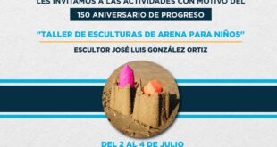 Progreso, Yucatán a 29 de junio de 2021.- Con motivo del 150 aniversario de la fundación de la Ciudad y Puerto de Progreso, el Ayuntamiento que preside Julián Zacarías Curi invita a todas y todos los niños del municipio al “Taller de esculturas de arena”, el cual estará coordinado por …