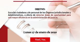 Mérida, Yucatán a 22 de enero de 2020. – El Poder Judicial del Estado convoca a todos los ciudadanos a participar en las mesas de atención ciudadana que se desarrollarán en los municipios de Ticul y Umán el próximo lunes 27 de enero. Las mesas ciudadanas se realizan a iniciativa …
