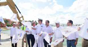 El Gobernador Mauricio Vila Dosal, el coordinador general de Puertos y Marina Mercante de la Secretaría de Comunicaciones y Transportes (SCT), Héctor López Gutiérrez, y el director general de la Administración Portuaria Integral (API), Agustín Arroyo Toledo realizan el banderazo de inicio de los trabajos, en los que se aplica …