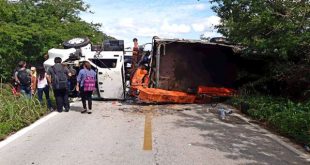 Redacción/Yucatán al Instante Tetiz, Yuc., a 18 de octubre de 2019.- Otra nave de “Don Saro” tuvo un aparatosa percance, tras reventar una llanta y sobrellevar una dramática volcadura de la unidad en el tramo Tetiz – Kinchil, de la vía federal Mérida – Celestún. De acuerdo a lo averiguado …