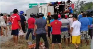 Este sábado, la caja de un tráiler cargado con más de 7 toneladas de pan, volcó sobre la carretera 180 en el kilómetro 86, a la altura del municipio de Calkiní, al norte del estado de Campeche. Reportes de la Policía Federal, indican que el conductor del tráiler, quien resultó …