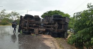Federico Azul/Yucatán al Instante MÉRIDA, Yuc., 20 de septiembre 2025.- La tarde de este viernes un camión tipo volquete cargado con material de construcción se volcó sobre el Periférico de Mérida Licenciado “Manuel Berzunza y Berzunza” a la altura del kilómetro 9, al Sur de la capital yucateca. El hecho …