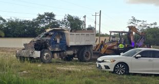 Federico Azul/redacción/Yucatán al Instante HUNUCMÁ, Yuc., 12 de septiembre de 2025.- Un aparatoso accidente se registró el pasado miércoles en la carretera Hunucmá–Tetiz, a la altura del kilómetro 3 de ingreso al primer municipio, donde un camión de volteo terminó volcado sobre su costado derecho. A pesar de lo espectacular …