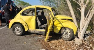Federico Azul/ Yucatán al Instante Kinchil, Yuc., a 31 de mayo 2024.- Al guiador de un vehículo Vocho se le olvidó hacer su alto y acabó estrellando con una van en el entronque Kinchil-Tetiz, para quedar el acompañante del primer compacto atrapado entre los fierros retorcidos. De acuerdo a lo …