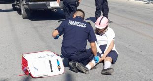 Federico Azul/ Yucatán al Instante Hunucmá, Yuc., a 29 de mayo 2024.- Tan duro estuvo el golpe en el pavimento que una estudiante que iba manejando su motoneta se ‘barrió’ en la calle 26 con 13 de este municipio, terminando lesionada la mañana de anteayer. S. Ch., de 16 años …