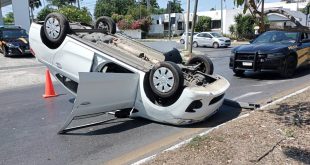Federico Azul/ Yucatán al Instante Mérida, Yuc., a 30 de marzo 2024.- Con las llantas hacia arriba el toldo de cabeza, quedó un Attitude luego de ser chocado por un vehículo desconocido, cuyo guiador aceleró y escapó luego de causar este accidente sobre Circuito Colonias en la colonia México. Según …