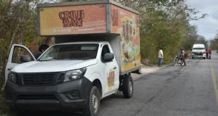 Federico Azul/ Yucatán al Instante Celestún, Yuc., a 20 de marzo 2024.- Un camión vetusto cargado de aguas residuales (caca de humanos) por causas desconocidas acabo volcando en la segunda curva de este municipio costero, dejando un lesionado es tarde, justo a la altura del kilómetro 86. De acuerdo a …