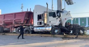 Federico Azul/ Yucatán al Instante Kanasín, Yuc., a 09 de marzo 2024.- Literal volvió a ver la luz el operador de un tráiler tipo gondola que esta tarde se reventó duro contra la base de las cámaras de videovilancia de la SSP, en la vía Mérida-Cancún; justo a la altura …