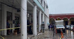 -Protección Civil reporta que no hay afectación al techo del edificio. -Retiran unos 10 metros lineales de concreto, de entre 10 y 15 centímetros, que decoraban la fachada. Mérida, Yucatán, sábado 28 de 2025.- El mercado Lucas de Gálvez presentó desprendimiento de una parte de cornisa de la fachada, por …