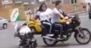 LEER MÁSPareja en una moto arrastrando un coche de bebé indigna en redes