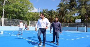 Progreso, Yucatán a 10 de julio de 2023. Con el objetivo de seguir mejorado los espacios públicos y deportivos del puerto, el alcalde Julián Zacarías Curi acompañado del director de Servicios Públicos y Ecología, Canan Góngora, supervisó las obras que se están llevando a cabo en el parque y campo …