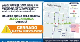 -El carril central del cruce ubicado en la calle 39 con 40 de la colonia Jesús Carranza se mantiene cerrado desde hoy y hasta nuevo aviso, por lo que se invita a la ciudadanía a tomar previsiones. Mérida, Yucatán, 31 de mayo de 2023.- Como parte de los trabajos para …