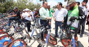 David Salazar/ Yucatán al Instante MÉRIDA, Yuc., 17 de mayo 2023.- Esta mañana se presentó una nueva opción de movilidad en Mérida, que constará en bicicletas públicas que serán instaladas en diferentes estaciones que serán instaladas en diferentes partes de la ciudad con el objetivo de conectar las diferentes rutas …