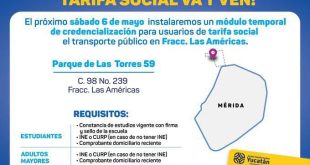 -El día de mañana, sábado 6 de mayo, en horario de 9 de la mañana a 2 de la tarde, se instalará la unidad de atención temporal para que estudiantes, adultos mayores y personas con discapacidad puedan tramitar su tarjeta de tarifa social. -La ubicación del módulo será en el …