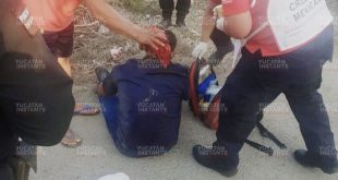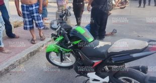 Federico Azul/ Yucatán al Instante Kinchil, Yuc., a 23 de abril 2023.- Por no hacer su alto obligatorio, un pedalista ‘chupirul’ terminó siendo colisionado por un motociclista para provocar que también derrape en la calle 18 con 25 del centro de este pueblo, la tarde de ayer sábado. Javier Cuxim …