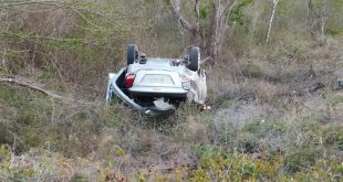 Federico Azul/Yucatán al Instante Kinchil, Yuc., a 18 de abril.- Una pareja de turistas de unos 60 años de edad sobrellevo una aparatosa volcadura, tras “morder” el borde de la carretera y salirse del tramo Kinchil-Celestún, minutos antes de las 6 de la tarde. La pareja de la tercera edad …