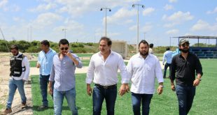 Progreso, Yucatán a 14 de abril de 2023. El alcalde Julián Zacarías Curi realizó un recorrido en la Unidad Deportiva Progreso y el Campo Baltazar Yama de Chuburná para supervisar las obras de construcción y remodelación que dieron inicio en diciembre del año pasado y que, actualmente, se encuentran a …