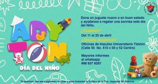 -La ADY invita a donar juguetes para niños del Oriente. Tizimín Yucatán a 12 de abril de 2023.- Con el objetivo de organizar actividades del Día del Niño para los pequeños de Tizimín que menos tienen, la Asociación Deportiva Yucatán, lanzó el “ADYTÓN” para recolectar juguetes nuevos o en buen …