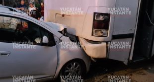 Federico Azul / Yucatán al Instante Kinchil, Yuc., a 20 de agosto.- Vaya sobresalto tuvieron empleados de una granja porcícola que abordaban un autobús a su centro de trabajo, al escuchar un seco guamazo, debido a que un vehículo Spark se aporreó en la parte posterior de esa pesada unidad. …