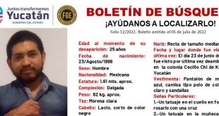 José Andrés Chan Be fue visto por última vez el pasado 23 de junio deambulando en la colonia Cecilio Chí de Kanasín. KANASÍN, Yuc., 07 de julio 2022.- El joven José Andrés Chan Be, de 25 años de edad, se encuentra desaparecido, por lo que la Unidad Especializada en la …
